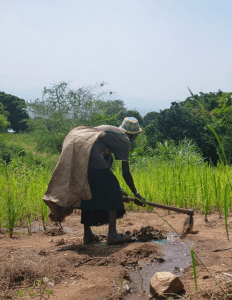 Feature image caption: Sibou woman spreading irrigation water. Image Credit: The author