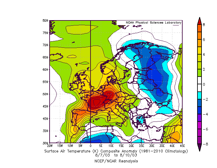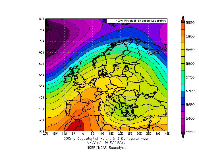 In early August 2003, a wave of devastating heat swept across Europe lasting around 10 days. Temperature records were broken and wide-ranging impacts in the form of wildfires, water shortages, power outages and a large heat-related death toll, resulted. For the UK, close to 2000 heat related deaths occurred during this period with deaths across Europe in excess of 70,000. Fast-forward seventeen years to the second week of August 2020 and there is an uncanny resemblance of the temperature extremes and associated anomalies to those of 2003 (Figure 1).