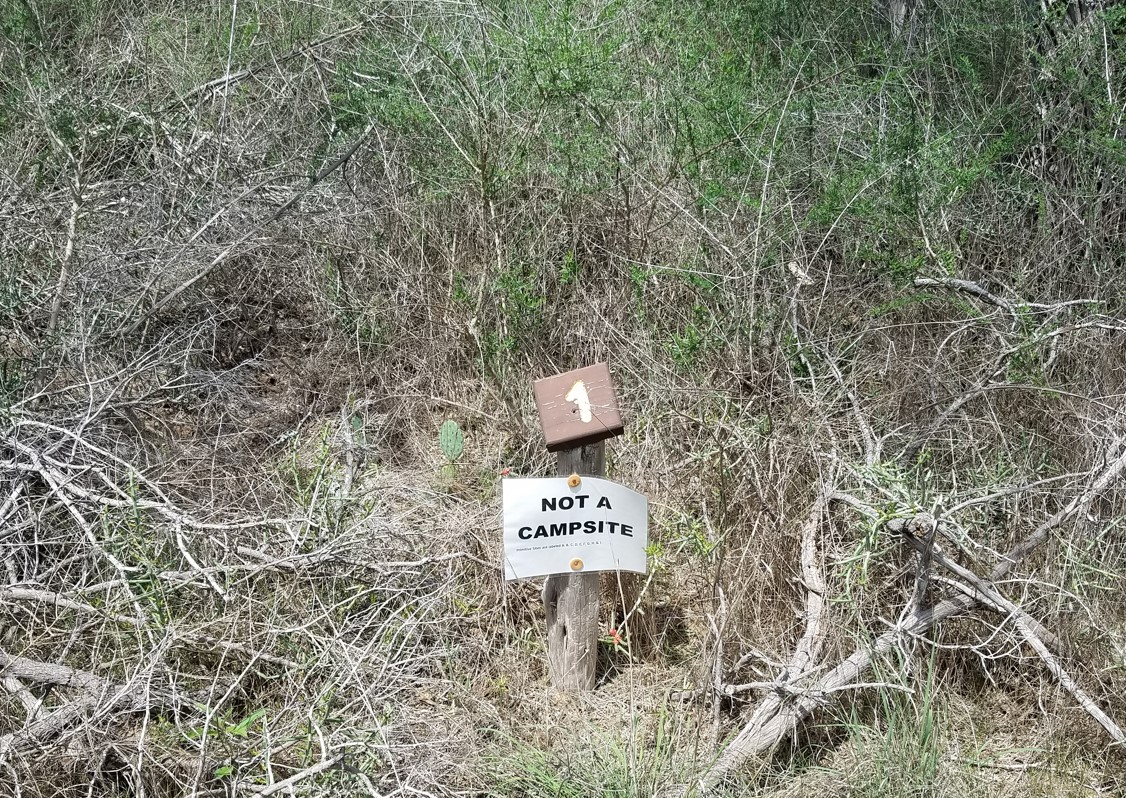 Any place engages in dialogue with us, sending signs and absorbing our actions as communications. The picture above hints at some sort of misunderstanding. A sign by a hiking trail reads “NOT A CAMPSITE.” Apparently, people have been mistaking this place as a campsite, or else the sign would not have been put up by park staff. The act of camping was some camper’s interpretant—an action taken in response to a particular interpretation of the place—but from the park staff’s point of view it was also a misinterpretation. The number “1” carved into a piece of wood was not a campsite number. It was there to key to an interpretive trail guide, so visitors could read explanations of features along the trail. The “NOT A CAMPSITE” sign is a sort of reply to the traces of camping (such as broken branches, bits of debris, and cleared areas on the ground), revealing the misinterpretation of the “1”, while offering a bit of new information to all passersby. In this case, written words jump out to highlight a malfunction of the ordinary, nonverbal, place dialogue.