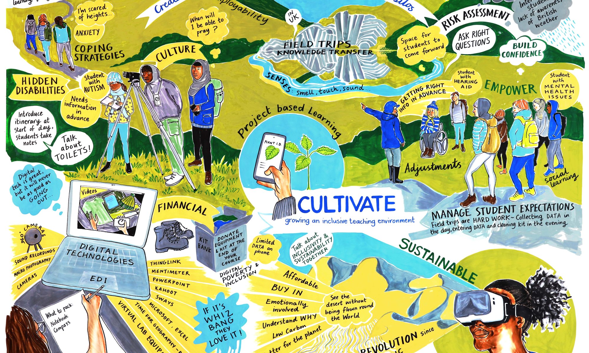 The CULTIVATE project, led by Dr Lynda Yorke at Bangor University and funded by NERC, was about enabling educators to better plan and deliver fieldwork teaching that is inclusive and accessible for all students by taking a grassroots approach. As a project team, we have therefore tried to explore some key inclusion and accessibility issues through using storytelling to collect personal fieldwork experiences and exploring digital approaches used by colleagues for field teaching through our hackathon and workshop events. In this way CULTIVATE was very much about growing an inclusive teaching environment that was driven by the community for the community.