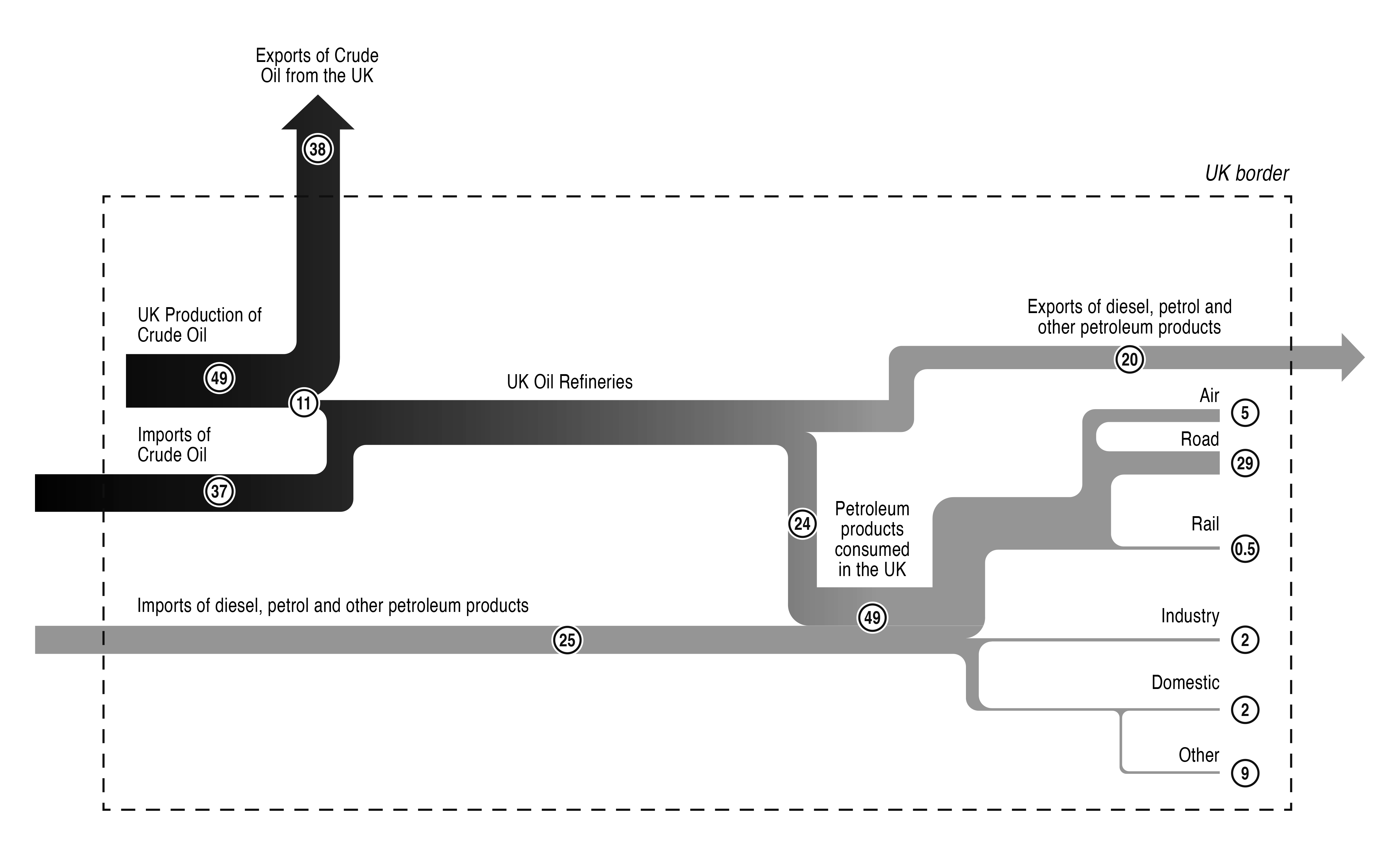 Offshore production of hydrocarbons – and onshore demand – are less tightly connected than one might think. Take oil, for example (Figure 1). The six major oil refineries in the UK are fed mainly by distant sources of crude with ‘home-grown’ production supplying only one in seven barrels (14%) in 2021. There is no requirement that oil produced from UK territory flows to UK consumers and most of it does not: in 2020 over a quarter of UK oil production was destined to fuel cars in China, rather than supplying the forecourts of local petrol stations, while nearly half of UK crude exports are destined for the Netherlands. When you fill up at the pump, there’s a good chance the fuel was imported (Russia supplied around a third of the UK’s diesel imports in 2021). And, even if your petrol or diesel came from a UK oil refinery, it is more likely to be based on crude from Norway or the United States than from the North Sea. The situation for gas is different – pipelines bring the gas onshore where it is fed into the national transmission network – although the UK’s connectivity to the continent and reliance on imports mean physical supply security does not mean security of price.
