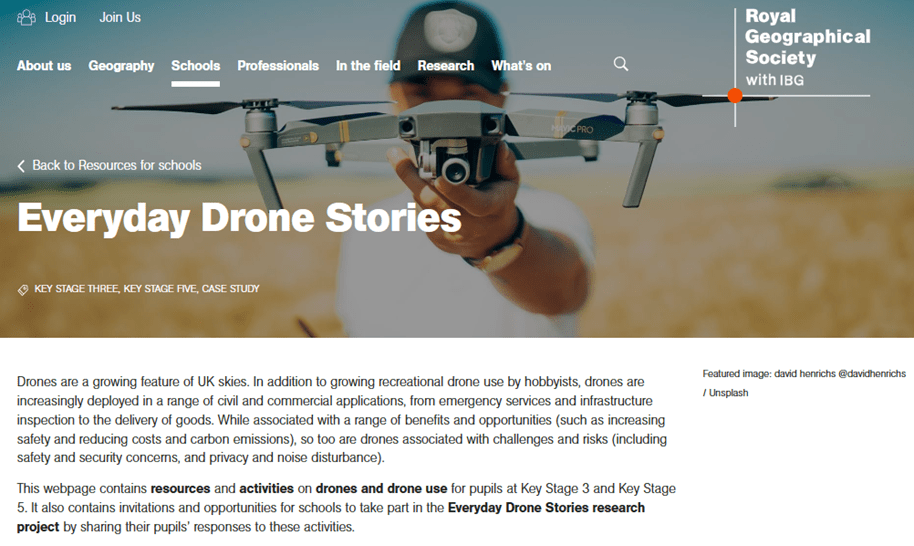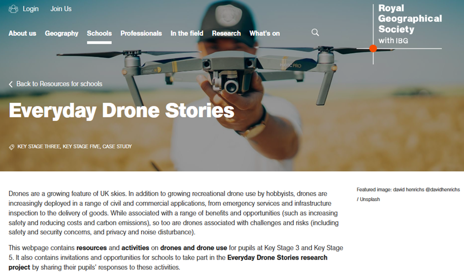 Everyday Drone Stories, Resources for Schools, Royal Geographical Society (with IBG). Available at: https://www.rgs.org/schools/teaching-resources/everyday-drone-stories/