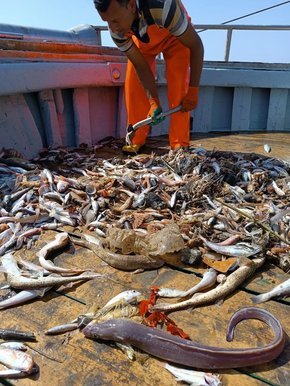 As on of the SeaPaCS activities, we interviewed fishermen on board during their fishing practices, focusing on their perception of plastic pollution in the Mediterranean Sea in relation to marine life and their livelihood. We discovered that there is a strong concern about plastic pollution amongst fishermen, especially how it affects the quality of fish being caught, considering the high quantity of marine debris by-caught in fishing nets (reaching up to 70% of the total weight of the fished in winter season). Moreover, the fishermen reported that abandoned, lost, or otherwise discarded fishing gear including ropes can cause major problems to navigation as these intertwine with the propeller, while plastic films could clog the engine cooling system, causing it to overheat. These damages can cost the fishermen thousands of euros, so plastic, they note, causes not only an environmental damage, but also an economic one.