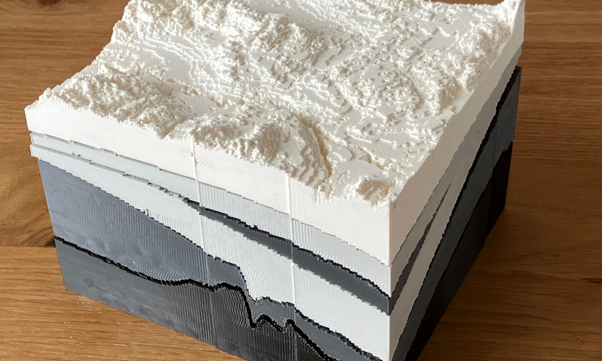 So, should we teach with Minecraft? This isn’t the kind of yes/no question it might seem at first. It is instead a good question to think with owing to how it can prompt reflection on the practices through which geographic knowledge is collected, maintained, and used in public geoscience. I took the Minecraft file over to our engineering labs, for instance, to have it 3D printed to think through other material forms digital data may take (pictured above). It comes apart like a loose stratigraphic puzzle to show something of past paleogeographies. In so doing, it also opens questions with colleagues and students about the relationships of data to the forms of Indigenous dispossession that attend geoscientific knowledge in Alberta.