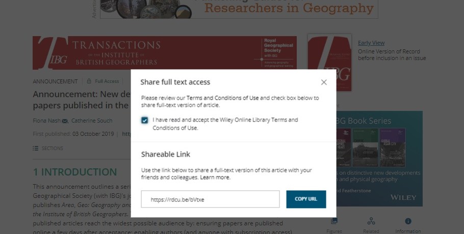 Announcements Area Geo: Geography and Environment The Geographical Journal Transactions of the Institute of British Geographers4 new features to the journals: explained